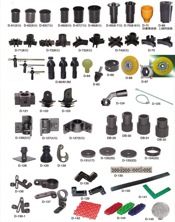 品配件,塑膠腳架配件,夾扣配件,接頭配件,鎖壁配件,衛浴配