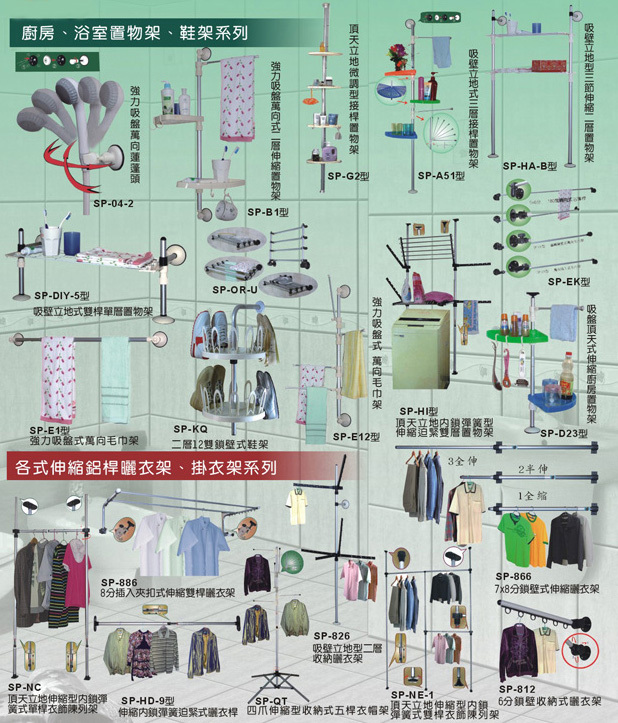 製置物桿,不會生鏽 . 伸縮式設計 . 可依使用空間調整安裝高度