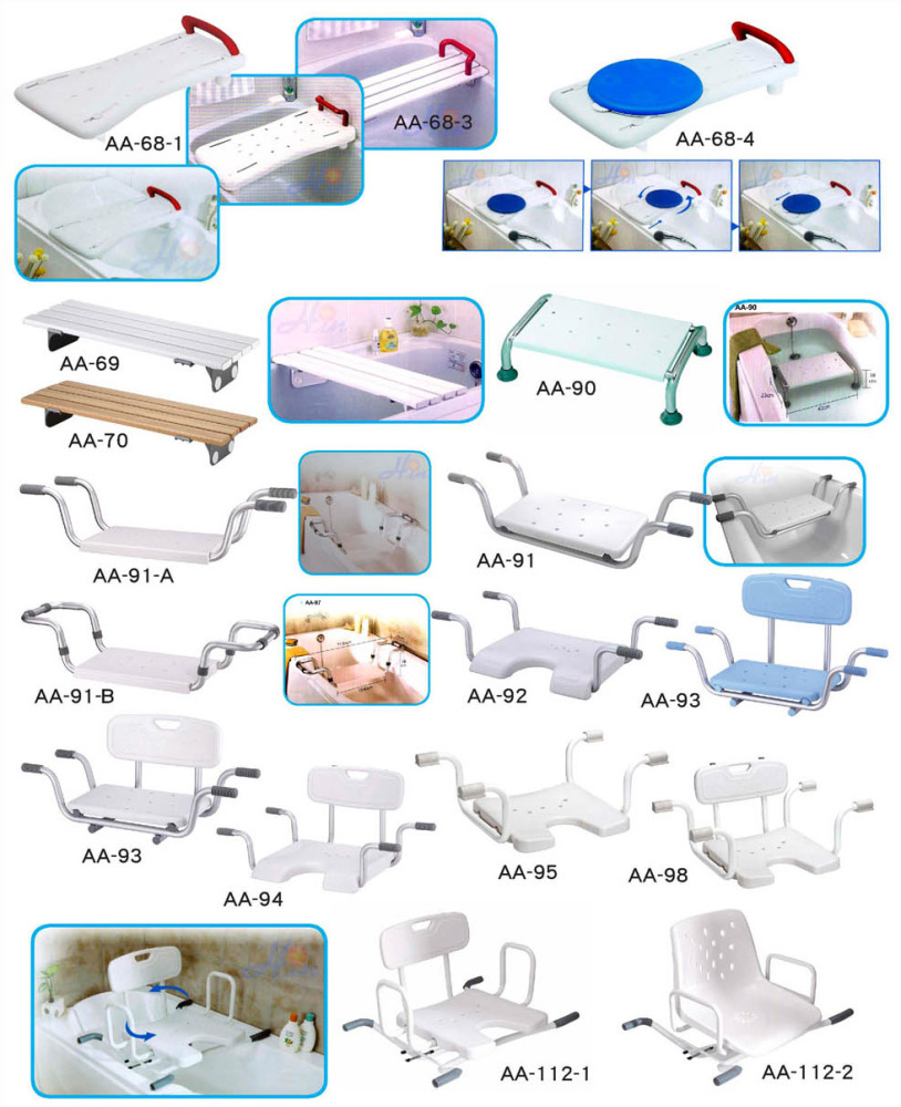 貿易情报:AA-38 鐵製無背七段調整三角形軟墊洗澡椅產品包裝方式:1PC / PE袋 / 1PC/五層箱 材積:41.5 x 37.5 x 51 CM = 2.8 才 淨毛重:2 / 3 KGS AA-51 產品尺寸 :: 50 x 31 x 47~50 CM 鋁製KD3段調整摺疊無 椅背浴室椅產品包裝方式:1PC / PE袋 / 1PC/五層箱 材積: 51.5 x 10 x 56 CM = 1.02才 淨毛重:2 / 2.75 KGS