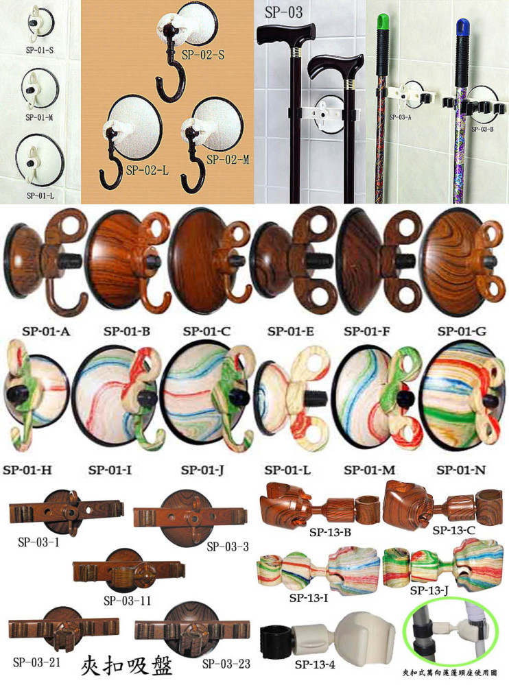 貿易情报:SP-04-1 產品尺寸 :: 65mm 強力吸盤 強力吸盤萬向蓮蓬頭座 產品包裝方式:1PC / 白盒 / 60PC / 五層箱 材積:56 x 18.8 x 40 CM = 1.5 才 淨毛重: 5.5 / 6.5 KGS 內盒尺寸 : 9 x 8.3 x 8 CM or 1PC / PP塑膠袋 + 吊卡 / 48PC / 五層 箱 材積:1.8 才 淨毛重: 4.2 / 5.2 KGS SP-04-2 產品尺寸 :: 85mm 強力吸盤 強力吸盤萬向蓮蓬頭座 產品包裝方式:1PC / 白盒 / 60PC / 五層箱 材積:56 x 18.8 x 40 CM = 1.5 才 淨毛重: 6.7 / 7.7 KGS 內盒尺寸 : 9 x 8.3 x 8 CM or 1PC / PP塑膠袋 + 吊卡 / 48PC / 五層 箱 材積:2 才 淨毛重: 5 / 6 KGS SP-04-3 產品尺寸 :: 85mm 強力吸盤 強力吸盤萬向蓮蓬頭掛 勾座產品包裝方式:1PC / PP塑膠袋 + 吊卡 / 72PC / 五層箱 材積:56 x 18.8 x 40 CM = 1.5 才 淨毛重: 9.7 / 10.7 KGS SP-04-B / 04-C 產品尺寸 :: 04-B型 65 mm . 04-C型 85 mm 仿木紋強力吸盤萬向蓮蓬頭座產品包裝方式:1PC / 白盒 / 48PC / 五層箱 材積:56 x 18.8 x 40 = 1.5 才 淨毛重: 04-B型 5.5 / 6.5 KGS . 04-C型 6.7 / 7.7 KGS 內盒尺寸 : 9 x 8.3 x 8 CM