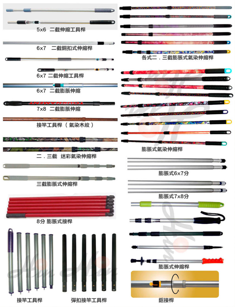 ,旗桿,營柱桿,帳篷桿,伸縮腳架,伸縮指揮棒,托槍桿及各式