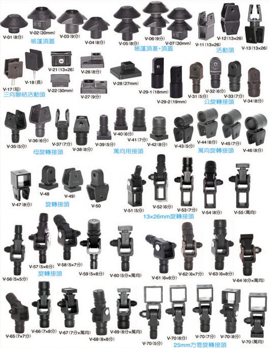 品配件,塑膠腳架配件,夾扣配件,接頭配件,鎖壁配件,衛浴配
