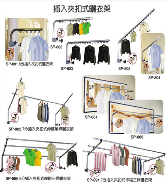 & 塑膠製鎖桿式掛衣條 . 可吊掛襯杉類之輕衣物