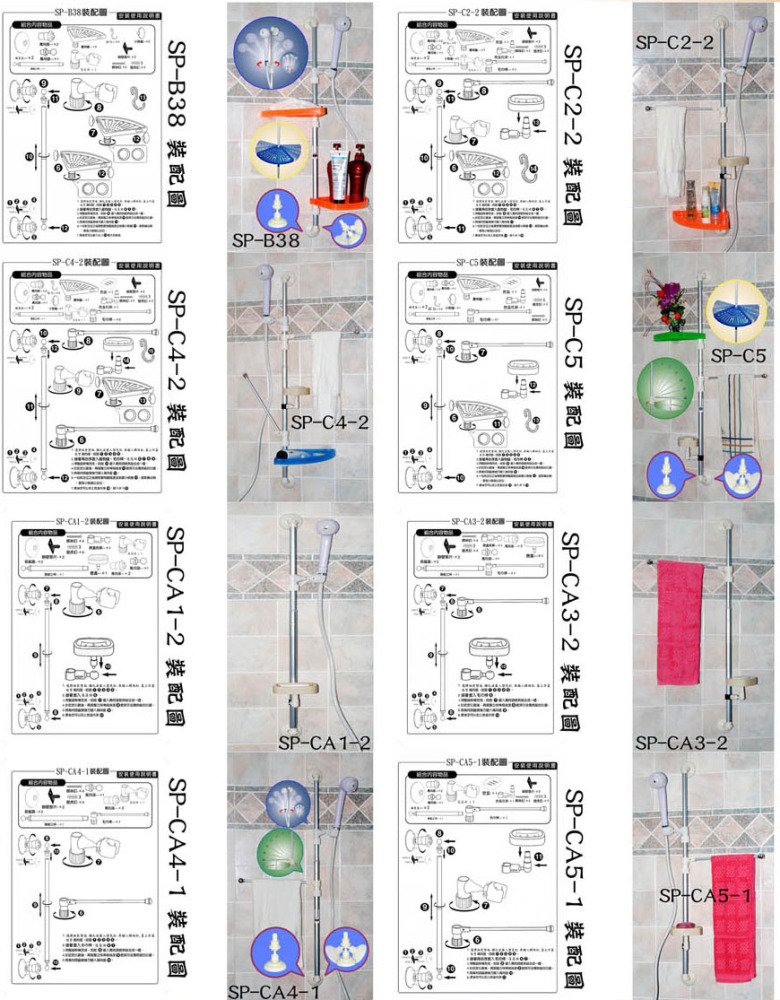 試看是否固定牢靠 . 即可使用 . 利用毛巾桿或蓮蓬頭座上附之外