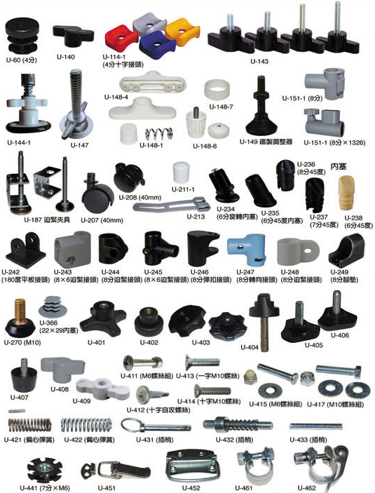 品配件,塑膠腳架配件,夾扣配件,接頭配件,鎖壁配件,衛浴配