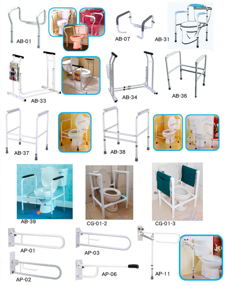 貿易情报:. AB-01 鋁製五段調整馬桶扶手 . 產品包裝方式:1 PC/PE袋,1 PC/五層箱 . 材積:48 x 7.5 x 68 cm = 0.86才 . 淨毛重:1.7/2.4 kgs