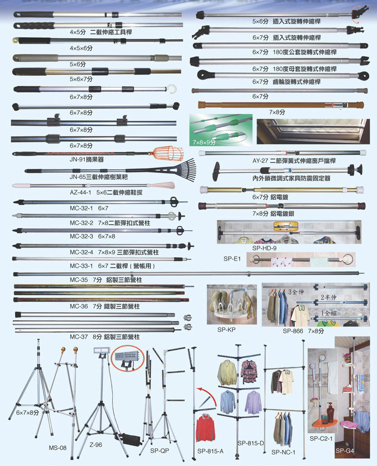 ,旗桿,營柱桿,帳篷桿,伸縮腳架,伸縮指揮棒,托槍桿及各式