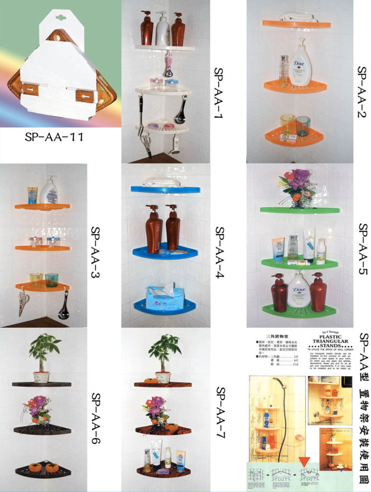 A : 產品配件 : & 塑膠材質三角置物盤x3 . 不似木質置物架 .