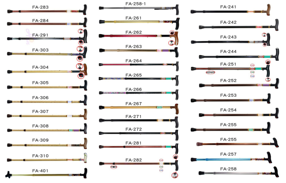 貿易情报:A:二截10段振動警示調整手杖產品包裝方式:1 PC/PE袋,25 PC /五層箱/材積:84 x 29 x 21 cm = 1.9才 淨毛重:11.5/12.5 KGS