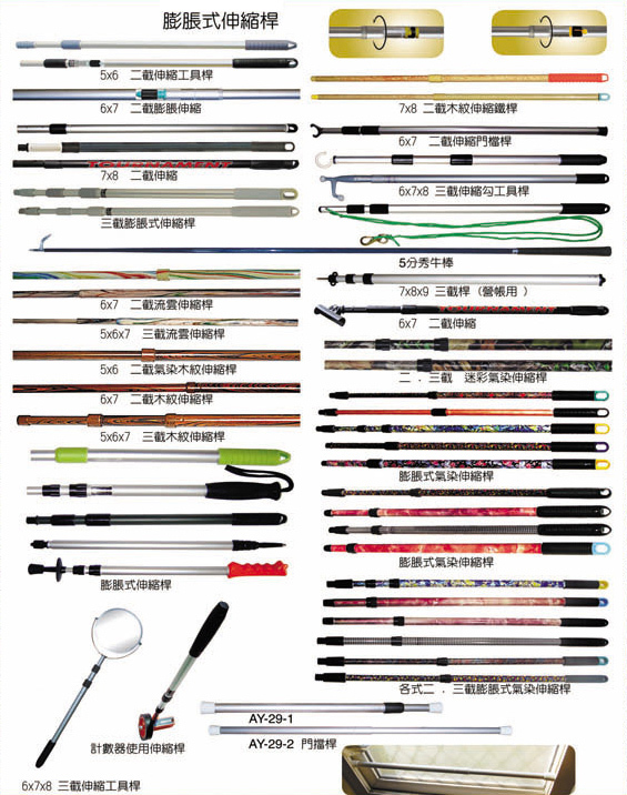 ,旗桿,營柱桿,帳篷桿,伸縮腳架,伸縮指揮棒,托槍桿及各式