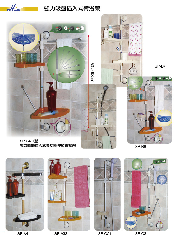 板 . 面或壁面上使用,單層架+收折毛巾桿或加活動蓮蓬座的設計