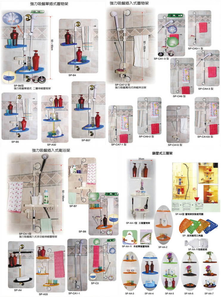 貿易情报:我司是台灣本地專業生產各式塑膠強力吸盤,衛浴用品,毛巾架, 置物架,曬衣架,各式鋁合金伸縮桿,手杖,浴室洗澡椅,便器椅 、各式天幕帳,收納桌,塑膠掃把,畚斗,拖把,家庭用清潔用具 等配件之專業工廠,備有各式塑膠零件5000餘種,若有符合貴公司 需求的塑膠製品。我方將於最快時間內提供最好的價錢及樣品供確 認 / 敝司另設有模具部門,可為客戶提供開發設計