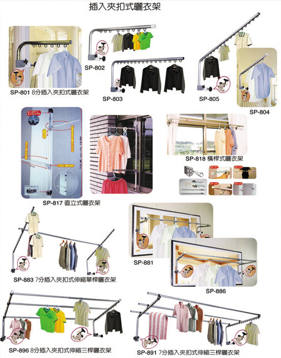 夾距 . 曬衣桿可變插入角度 & 塑膠製鎖桿式掛衣條 . 可吊