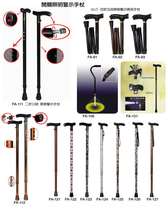 貿易情报:A:二截10段振動警示調整手杖產品包裝方式:1 PC/PE袋,25 PC /五層箱/材積:84 x 29 x 21 cm = 1.9才 淨毛重:11.5/12.5 KGS