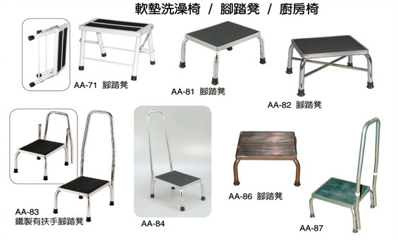 貿易情报:專業生產各式強力吸盤式衛浴用品 . 旗桿 . 毛巾架 . 展示架 . 置物架 . 曬衣架、高爾夫球練習架 . 棒球投準練習架 . 各類鋁合 金製造伸縮球架、各式鋁合金伸縮桿 . 9 ~ 35mm之各式伸縮桿塑膠 配件、各式鋁管加工 . 供應各式鋁管塑膠配件、各種LED製品 . 警 報器、手杖 . 浴室洗澡椅 . 便器椅、各式天幕帳 . KD式收納桌、 各式塑膠掃把 . 畚斗 . 拖把 . 家庭用清潔用具、各種禮 . 葬儀 用具 / 敝司另設有模具部門,可為客戶提供開發設計 AA-83 產品尺寸 :: 42 x 35 x 82.5 CM 鐵製KD有扶手腳踏凳產 品包裝方式:1PC / PE袋 / 1PC/五層箱 材積:50.2 x 36 x 39 CM = 2.49才 淨毛重:3 / 3.5 KGS or 1PC / PE袋 / 2PC/五層箱 材積:50.5 x 40.2 x 44.5 CM = 3.19才 淨毛 重:6 / 7.2 KGS AA-84 產品尺寸 :: 42 x 35 x 82.5 CM 鐵製有扶手腳踏凳產品 包裝方式:1PC / PE袋 / 2PC/五層箱 材積:47 x 36 x 88 CM = 5.3才 淨毛重:5 / 7 KGS AA-90 產品尺寸 :: 46 x 31 x 17 CM 不鏽鋼浴缸腳踏座墊產品 包裝方式:1PC / PE袋 / 1PC/五層箱 材積:47 x 32 x 18 CM = 0.9才 淨毛重:1.6 / 2.6 KGS