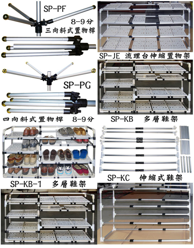 貿易情报:專業生產各式強力吸盤式衛浴用品 . 旗桿 . 毛巾架 . 展示架 . 置物架 . 曬衣架、高爾夫球練習架 . 棒球投準練習架 . 各類鋁合 金製造伸縮球架、各式鋁合金伸縮桿 . 9 ~ 35mm之各式伸縮桿塑膠 配件、各式鋁管加工 . 供應各式鋁管塑膠配件、各種LED製品 . 警 報器、手杖 . 浴室洗澡椅 . 便器椅、各式天幕帳 . KD式收納桌、 各式塑膠掃把 . 畚斗 . 拖把 . 家庭用清潔用具、各種禮 . 葬儀 用具 / 敝司另設有模具部門,可為客戶提供開發設計