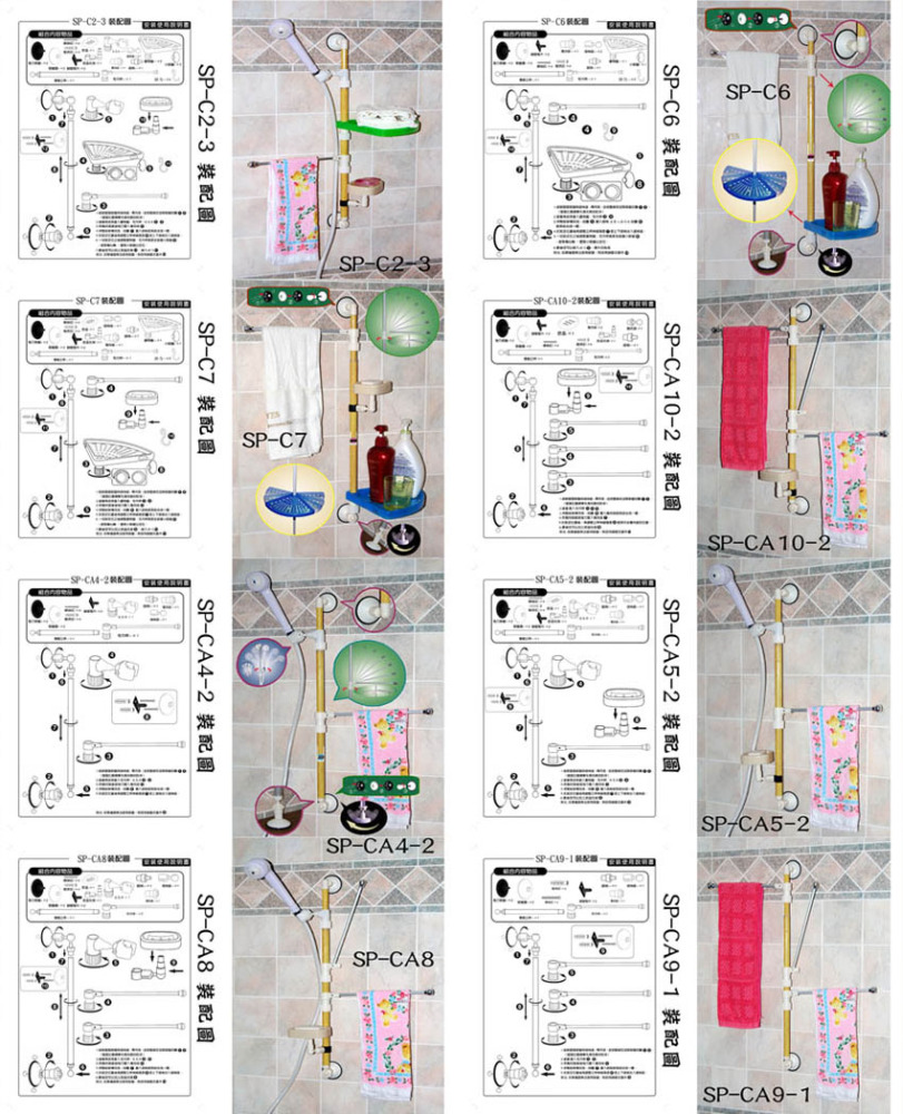 上下調整專利設計 . ( 亦可替換鎖壁結構 ) . 吸盤有多種尺寸 .