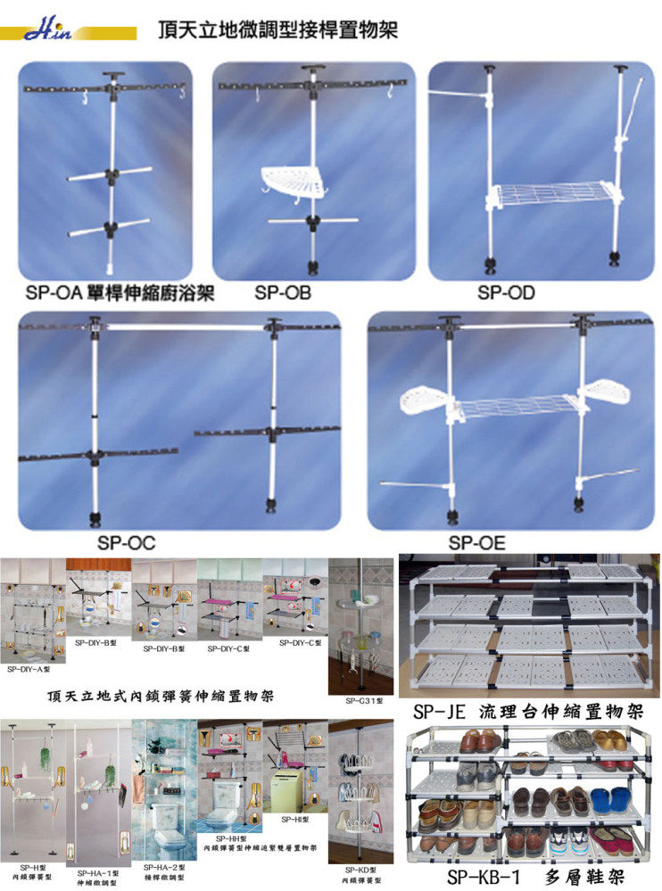 貿易情报:專業生產各式強力吸盤式衛浴用品 . 旗桿 . 毛巾架 . 展示架 . 置物架 . 曬衣架、高爾夫球練習架 . 棒球投準練習架 . 各類鋁合 金製造伸縮球架、各式鋁合金伸縮桿 . 9 ~ 35mm之各式伸縮桿塑膠 配件、各式鋁管加工 . 供應各式鋁管塑膠配件、各種LED製品 . 警 報器、手杖 . 浴室洗澡椅 . 便器椅、各式天幕帳 . KD式收納桌、 各式塑膠掃把 . 畚斗 . 拖把 . 家庭用清潔用具、各種禮 . 葬儀 用具 / 敝司另設有模具部門,可為客戶提供開發設計
