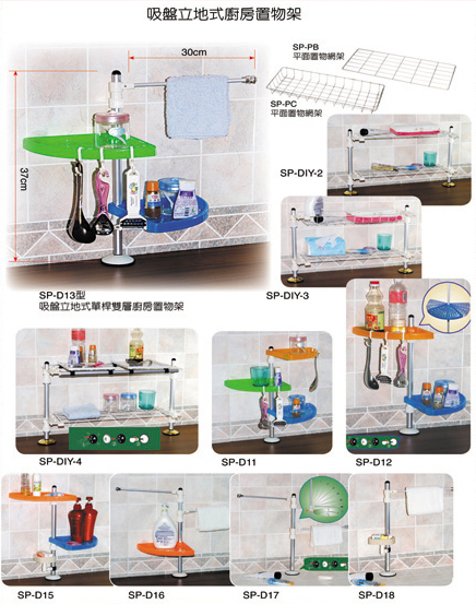 產品說明 : DIY式組裝,免工具,荷重2 kg . 獨特強力吸盤立地式設