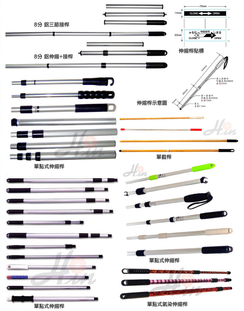 ,旗桿,營柱桿,帳篷桿,伸縮腳架,伸縮指揮棒,托槍桿及各式