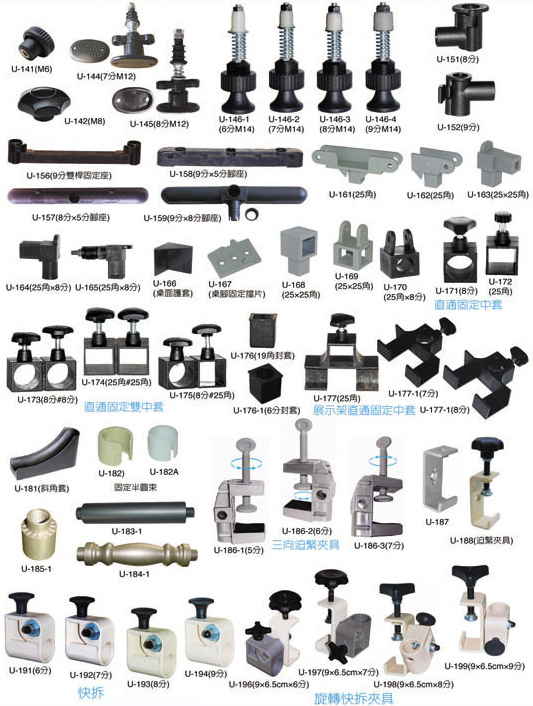 品配件,塑膠腳架配件,夾扣配件,接頭配件,鎖壁配件,衛浴配
