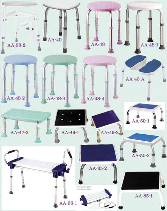 貿易情报:. AA-56 鋁製6段調整固定式無背浴室椅 . 產品包裝方式:1 PC/PE袋/1 PC/五層箱 . 材積:65.5x23x44 cm = 2.34才 . 淨毛重:2.6/3.6 kgs or 1 PC/內盒 4 PC/五層箱 . 材積:65.5x52.2x44 cm = 5.31才 . 淨毛重:14.4/15.8 kgs . 內盒尺寸: 64x23x44 cm . AA-61 鐵製3段調整摺疊無椅背浴室椅 . 產品包裝方式:1 PC/PE袋 1 PC/五層箱 . 材積:51.5x10x56 cm = 1.02才 . 淨毛重:5/6 kgs . AA-71 鐵製摺疊小板凳 . 產品包裝方式:1 PC/郵購盒 6 PC/五層箱 . 材積:49x38.5x37 cm = 2.5才 . 淨毛重:12.5/13.5 kgs or 1 PC/郵購盒 8 PC/五層箱 . 材積:64.5x38.5x36.5 cm = 3.2才 . 淨毛重:16.6/17.7 kgs or 1 PC/郵購盒 12 PC/五層箱 . 材積:49x38.5x72 cm = 4.8才 . 淨毛重:25.5/27 kgs . 內盒尺寸: 36.6x7.6x34.5 cm . AA-91 鋁製無背浴缸椅 . 產品包裝方式:1 PC/PE袋 1 PC/五層箱 . 材積:75x25x19 cm = 1.25才 . 淨毛重:1.8/2.8 kgs or 1 PC/郵購盒/4 PC/五層箱 . 材積:76.5x50x40.5 cm = 5.47才 . 淨毛重:7.5/8.5 kgs or 1 PC/郵購盒/6 PC/五層箱 . 材積:77x50x60.5 cm = 8.2才 . 淨毛重:10.6/12.7 kgs . 內盒尺寸: 75x23.8x19 cm