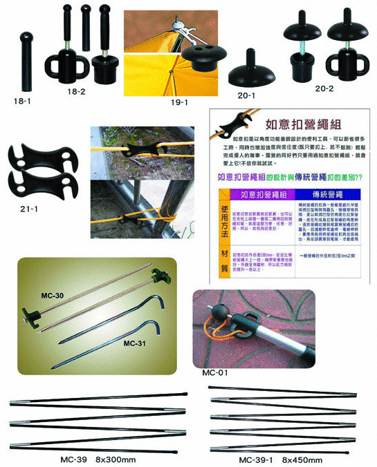 耳式繩鈎營針讓你輕鬆搭帳。 貼心提醒當你使用三節
