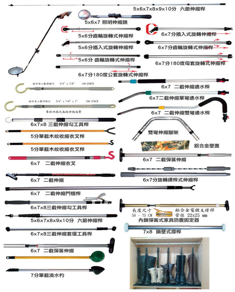 ,旗桿,營柱桿,帳篷桿,伸縮腳架,伸縮指揮棒,托槍桿及各式