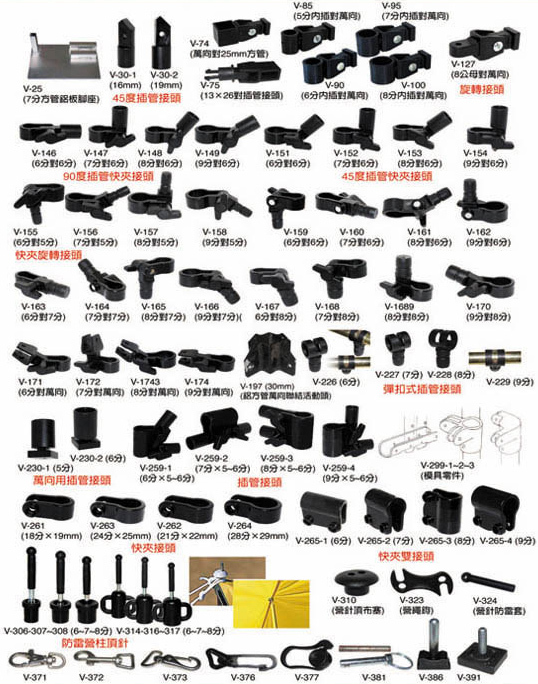 首頁 » 產品展示 » 各類塑膠零配件 » 運動 / 休閒用品零配件 » 休閒用品零件,營柱配件,帳蓬配件