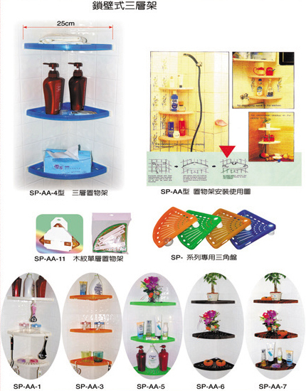A : 產品配件 : & 塑膠材質三角置物盤x3 . 不似木質置物架 .