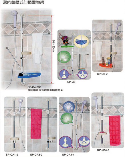 毛巾桿或蓮蓬頭座上附之外迫環調整使用位置並將之迫緊定位 . (
