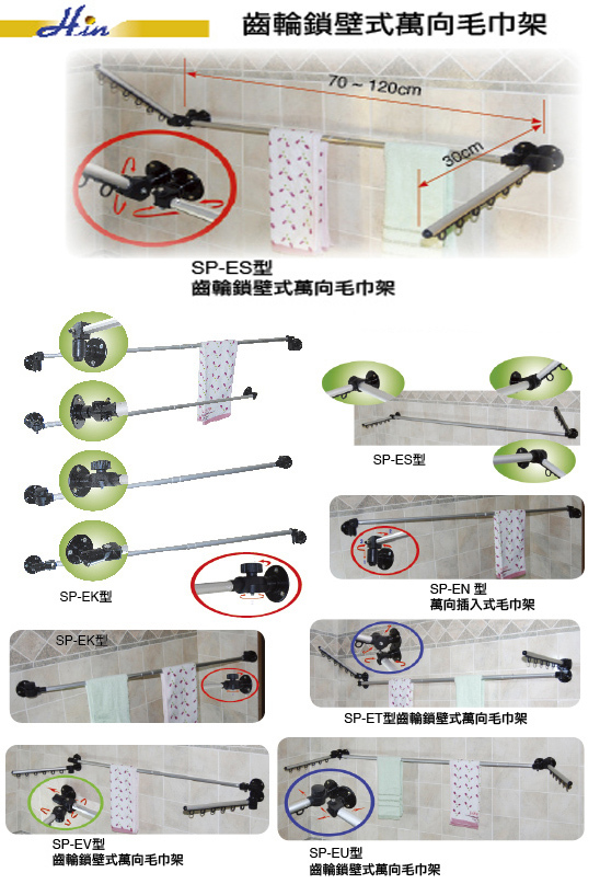 . 獨特鎖壁插入伸縮式360度旋轉,無段左右調整專利設計