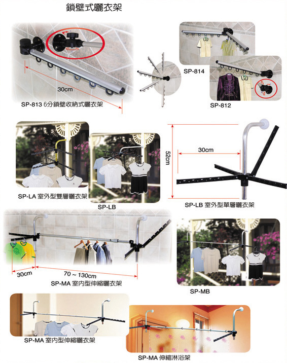 變吊衣方向 . 多件曬衣量 . 安裝方便無死角 . 適用各種壁面,安