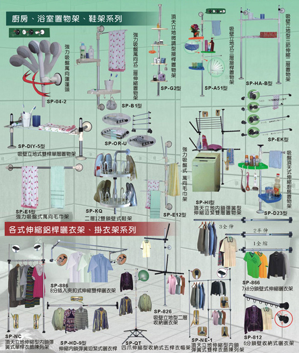 方等,充份利用空間 B : 產品配件 : & 伸縮曬衣橫桿為