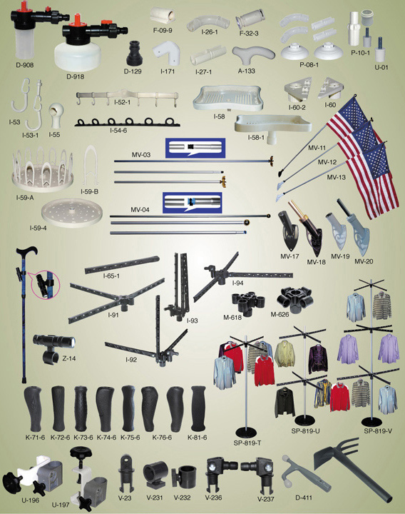 品配件,塑膠腳架配件,夾扣配件,接頭配件,鎖壁配件,衛浴配