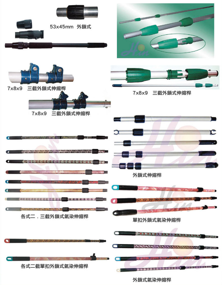 ,旗桿,營柱桿,帳篷桿,伸縮腳架,伸縮指揮棒,托槍桿及各式