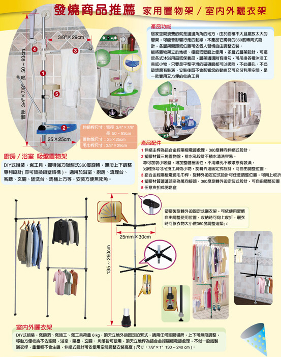 一般鐵製置物桿,不會生鏽 .伸縮式設計 . 可依使用空間調整安裝