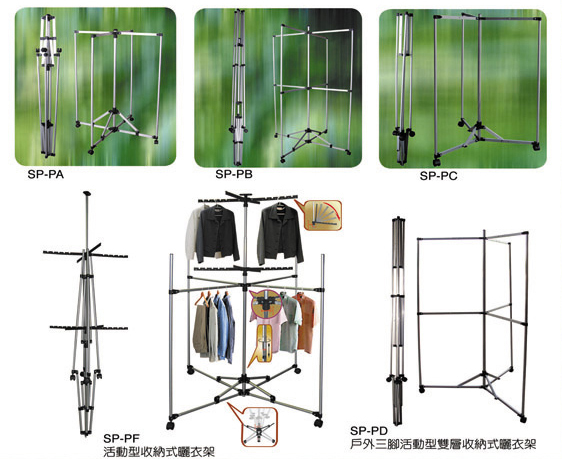 貿易情报:SP-PC 產品尺寸 :: 98 x 98 x 130 CM 收納尺寸 :: 20 x 20 x 162 CM 戶外三腳活動型收納式曬衣架產品包裝方式: 1PC / 五層箱 材積:162 x 20.5 x 20.5 CM = 2.4 才 淨 毛重:2.6 / 3.6 KGS SP-PD 產品尺寸 :: 138 x 138 x ( 106 / 197 ) CM 收納 尺寸 :: 22 x 22 x 251 CM 戶外三腳活動型雙層收納式曬衣 架產品包裝方式:1PC / 五層箱 材積:252 x 22.5 x 22.5 CM = 4.5 才 淨毛重:4.5 / 5.8 KGS